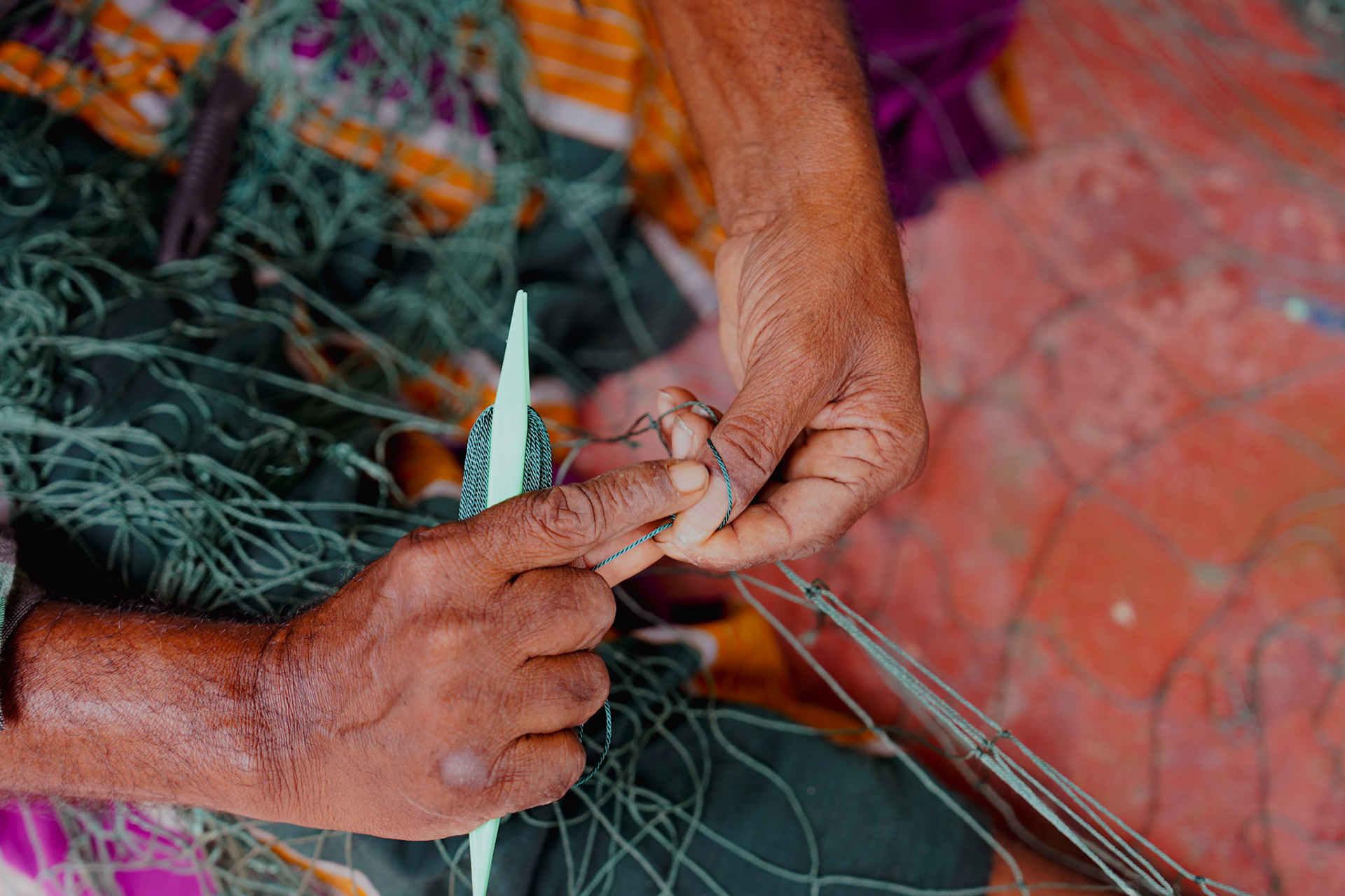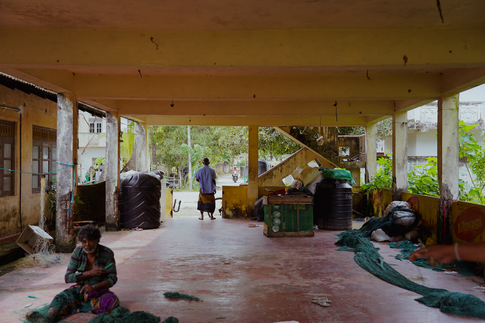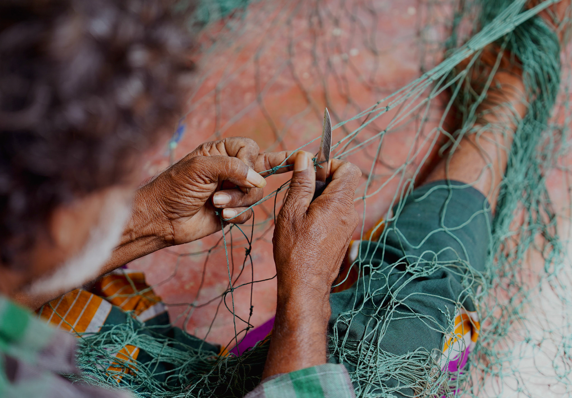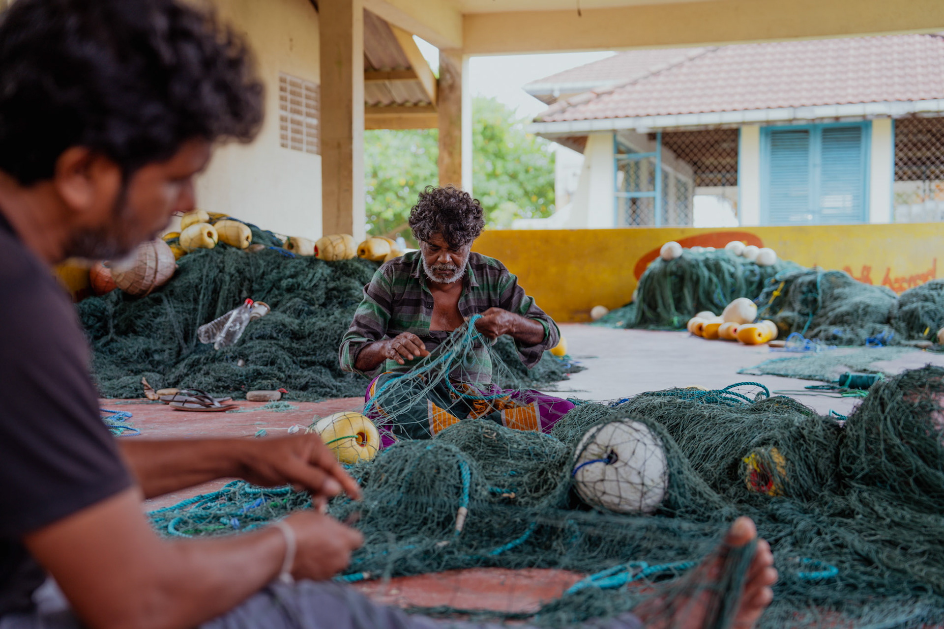 In Sri Lanka, I ended up by chance at the fishermen's guild in a small village.There, while they were teaching me how to mend nets, I learned that they are one of the few communities in the world that still practices small-scale fishing, unlike the large vessels owned by multinational corporations. In fact, in a small laboratory, several researchers study this community and its fish species.