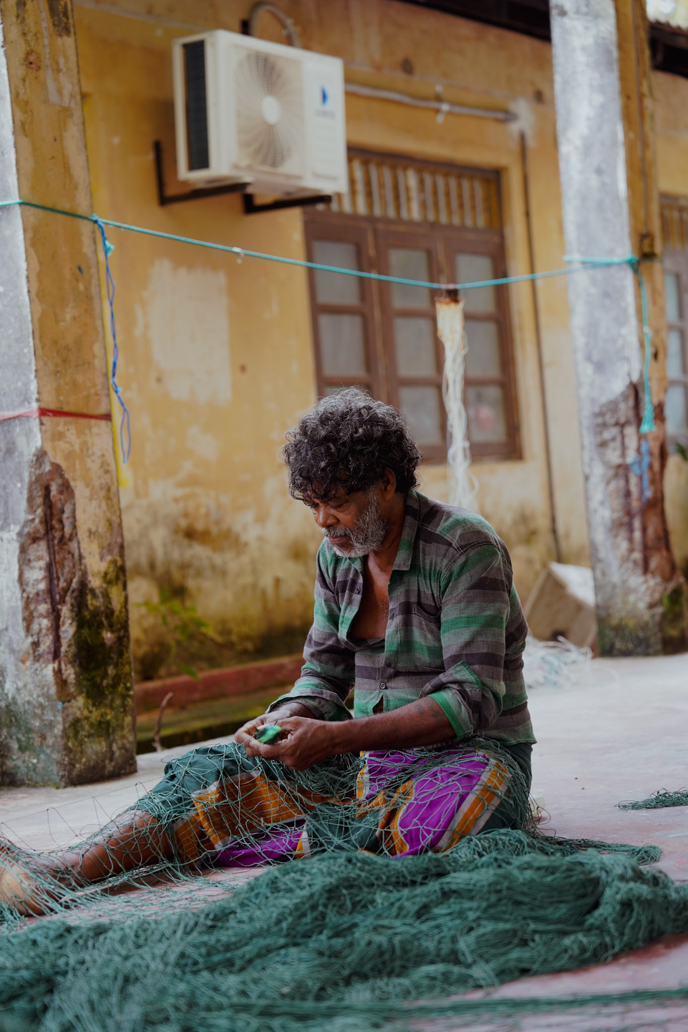 These men weren't fishermen, just net menders. They dedicate eight hours a day to finding the holes in the nets and mending them so they can continue to be used. Unlike what happens here, they don't throw them away; they repair them. As the only experts in this craft, they earn more than they would doing other jobs. But like most trades, few young people want to continue this work.